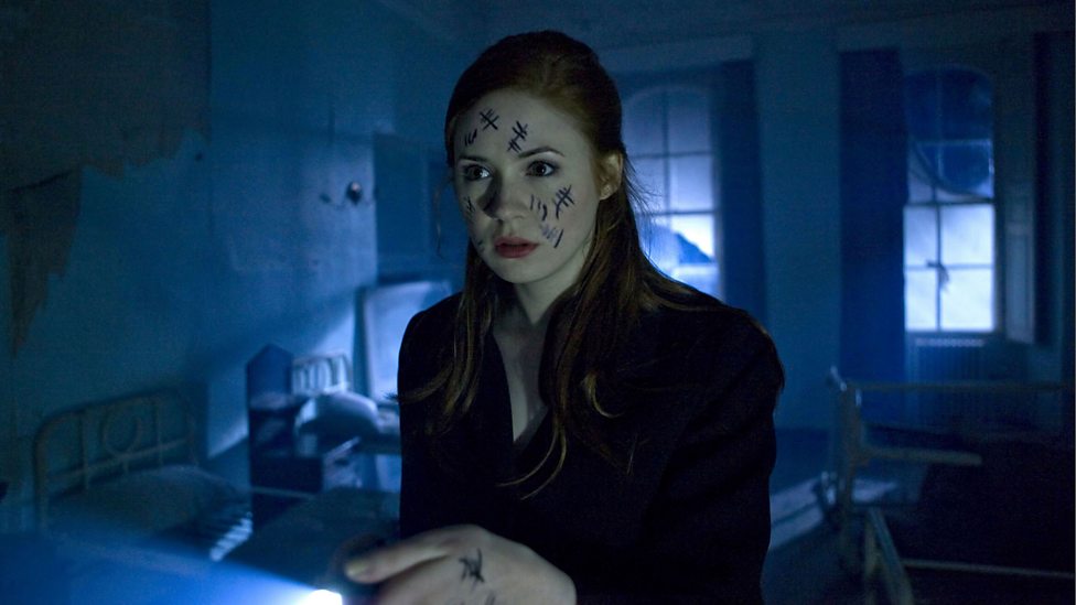The Silence are front and centre here as it is revealed that rather than being a traditional alien invasion story, this is one where the monsters have been here all along, and the Doctor is quick to state that he and his friends are leading a revolution against an established force. They are used really effectively, especially in the scenes in the gothic abandoned orphanage, with messages scrawled on the walls imploring people to get out. In particular, the scene where Amy explores the dorms on the upper floors with the tally marks on arms and face until the Silence hanging from the ceiling are revealed. The use of tally marks to indicate sightings of the creatures is a simple but effective way of building up the tension and dread in the story until they are revealed, along with the flashing palm implant that the Doctor gives all of his companions.
