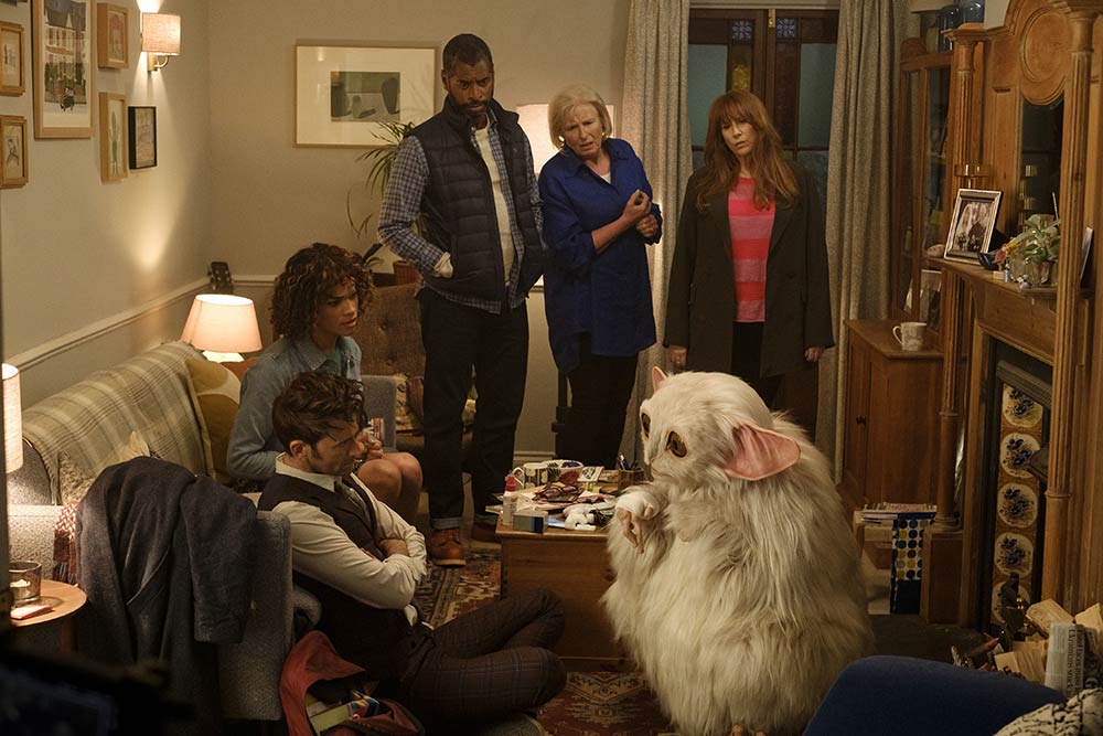 David Tennant and Catherine Tate do effortlessly slip back into their roles and it is a joy to see them back on screen together. They have such an easy chemistry, even when Donna doesn’t know who the Doctor is, which makes this a lot of fun. There are emotional bits, especially on the Meep’s spaceship, which don’t make a lot of sense thought about logically, but Tennant and Tate do their best to guide the audience over the rockier patches through the strengths of their performances. Like with Russell T Davies, it is lovely to have them back. The Fourteenth Doctor shows signs of being different from the Tenth, and is throwing around the word ‘love’ a lot more, especially when it comes to Donna and Wilf, who I was sad that we didn’t get a glimpse of here – maybe later. Meanwhile, Donna has become a fiercely protective mother, perhaps inspired by her own mother’s lack of protection towards her, and whilst she is still recognisably the Donna we have at the beginning of The Runaway Bride, there is enough to show that she has softened. We do, of course, get a return to the Donna we had through Series 4 at the end of the story. Tate’s coffee cup “spill” is a bit of a let down though.