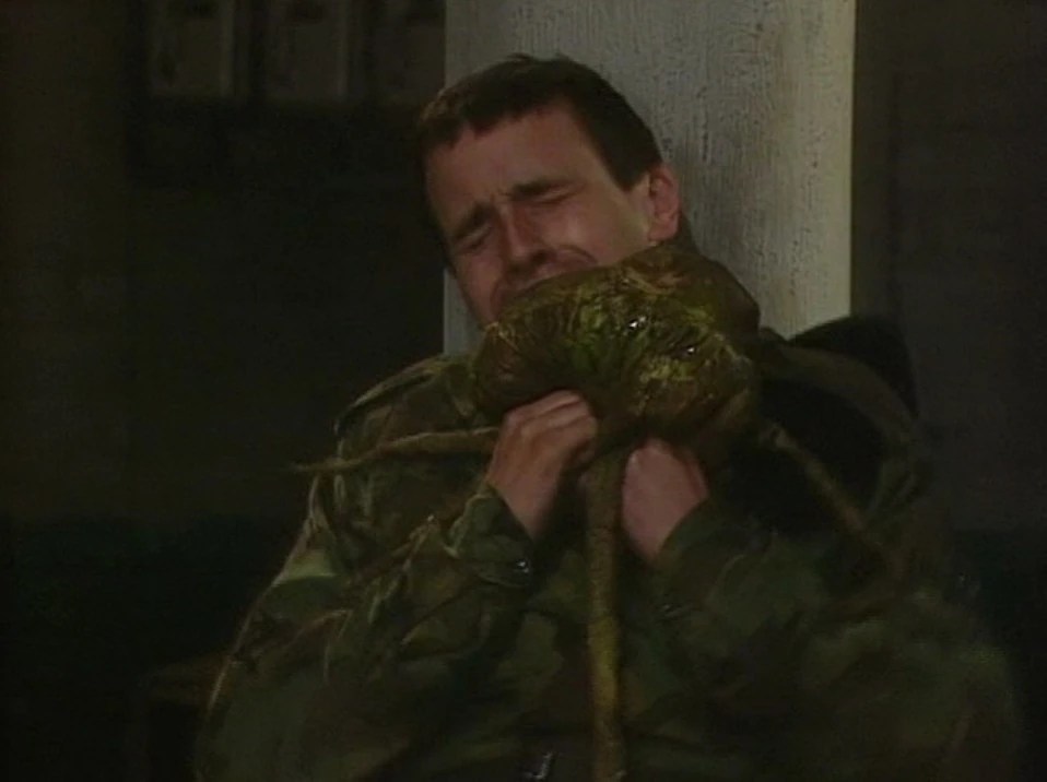 I do really like the scene where the Doctor, Tegan and the bomb squad soldiers are searching for the Dalek mutant in the warehouse. It is full of tension, subverts expectations with the cat and then has its cake and eats it with the mutant strangling one of the soldiers.