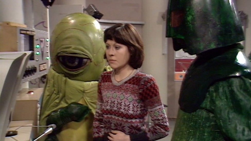 Cast: Jon Pertwee (The Doctor), Elisabeth Sladen (Sarah Jane Smith), Nina Thomas (Thalira), Donald Gee (Eckersley), Frank Gatliff (Ortron), Rex Robinson (Gebek), Alan Bennion (Azaxyr), Sonny Caldinez (Sskel), Ralph Watson (Ettis), Ysanne Churchman (Voice of Alpha Centauri), Stuart Fell (Body of Alpha Centauri), Gerald Taylor (Vega Nexos), Graeme Eton (Preba), Michael Crane (Blor), Terry Walsh (Guard Captain), Nick Hobbs (Aggedor), Roy Evans (Miner) & Max Faulkner (Miner).